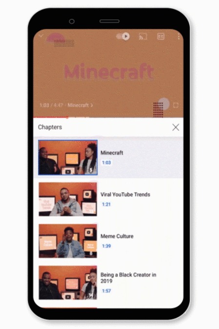 유튜브는 크리에이터가 비디오 속 챕터를 구분해 업로드할 수 있도록 만든 바 있다.