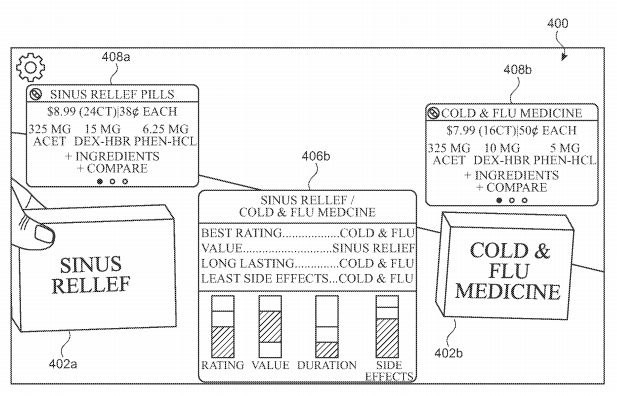 '제품 비교 기술'이란 이름의 특허에서는 애플 글라스로 제품을 보면